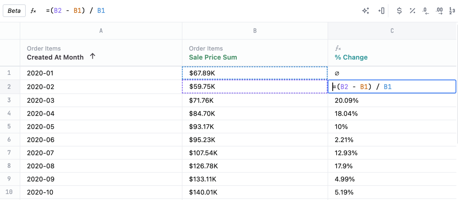 Omni is bringing the familiarity of spreadsheets right to our calculation interface. Table calculations can be used to create ad-hoc metrics that are performed post query processing on the result set using a point and click interface and the same formula language as Excel. Read more about it here!