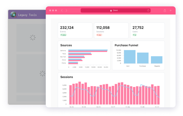 Your customers shouldn’t have to wait. Omni dashboards load instantly thanks to modern processing and smart caching — unlike legacy tools.